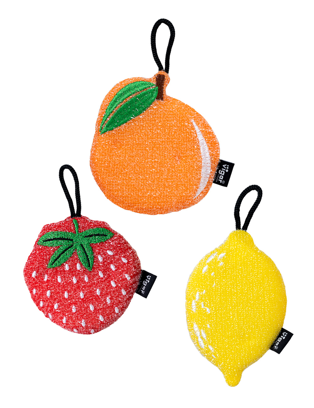 フルーツや朝ごはんなどのカラフルポップなスポンジです。毎日の食器洗いが楽しくなるデザインが揃いました。